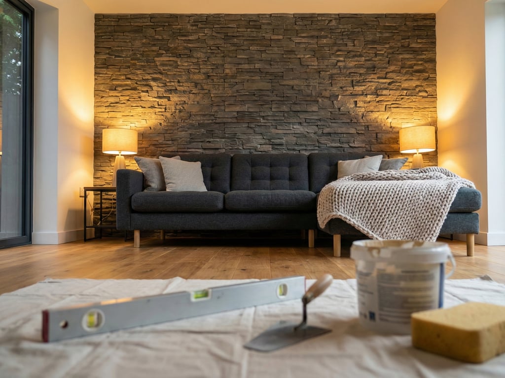 Steinwand im Wohnzimmer selber machen: Die besten Methoden, Materialien & Anleitungen